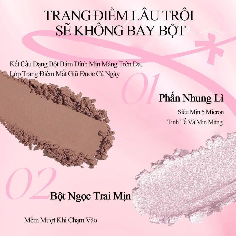- Hạt phấn mềm mịn, dễ blend trên da, không gây cộm hay khô mí mắt.
