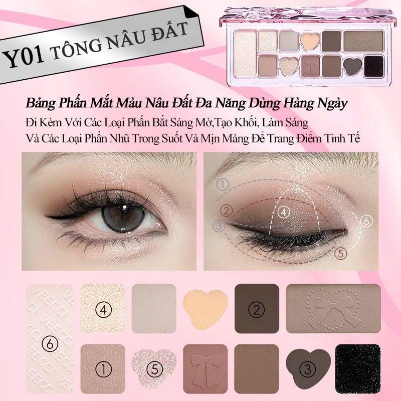 2. Bảng màu của Bảng Phấn Mắt VEECCI 11 Ô Ribbon Fantasy 11 Color Eyeshadow Palette